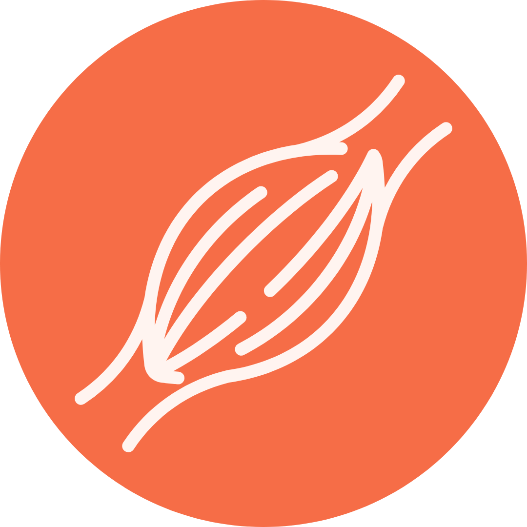Abstract illustration with overlapping green, orange, and striped semicircles.